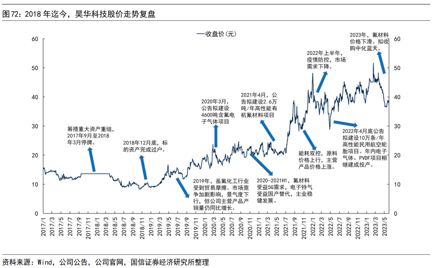 近年来,公司积极扩建PTFE产能,布局更高端FEP、PFA氟材料。此外,2023年2月,公司公告拟发行股份购买中化蓝天100%股权。公司持续积极整合优质业务与资产,将有望充分发挥协同效应。