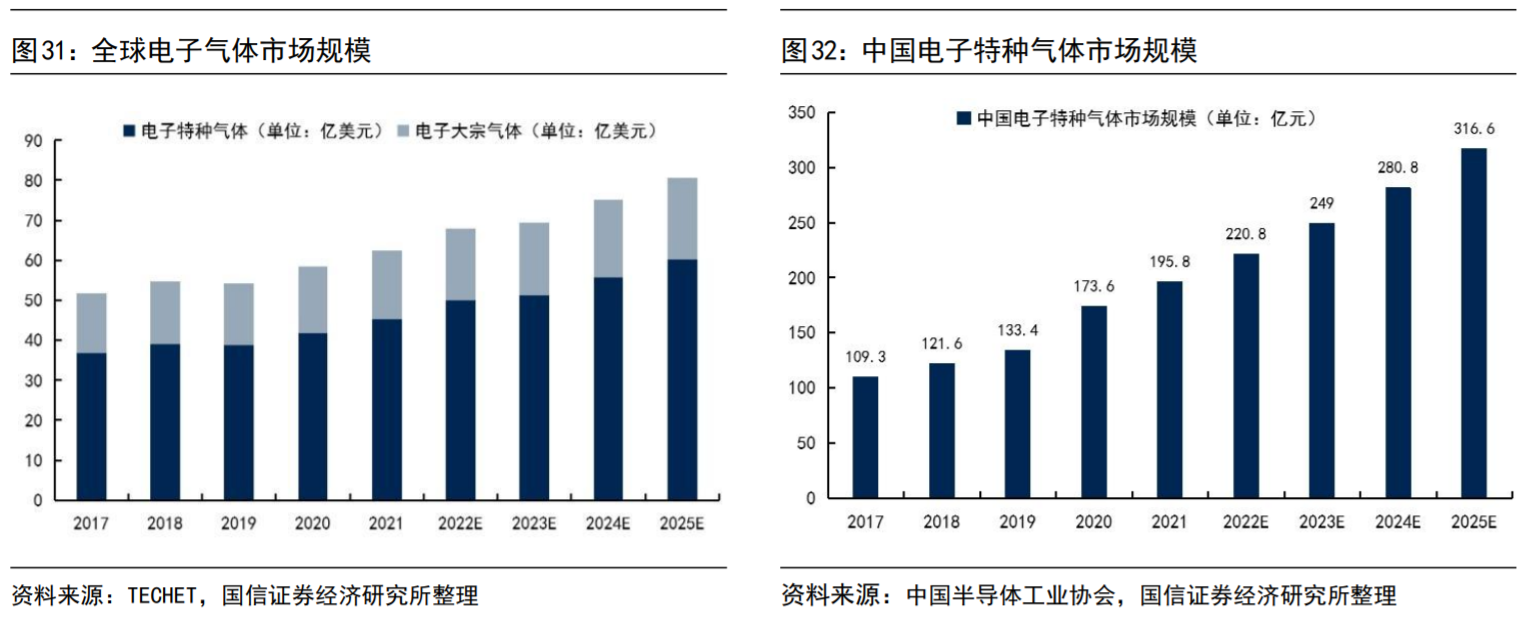 电子特气是第三大晶圆制造材料,市场规模不断增长。