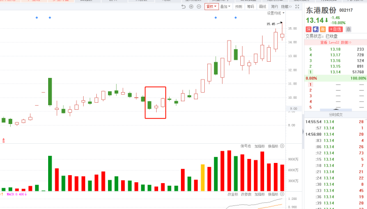 3、10日均线由跌趋走稳以后,股价一般要围绕着10日均线上下波动几天,而股价在10日均线上企稳后,k线多以小阳或中阳形态向上推进,显得很有节奏。