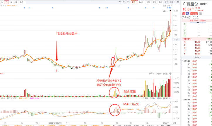 1、10日均线必须走平。