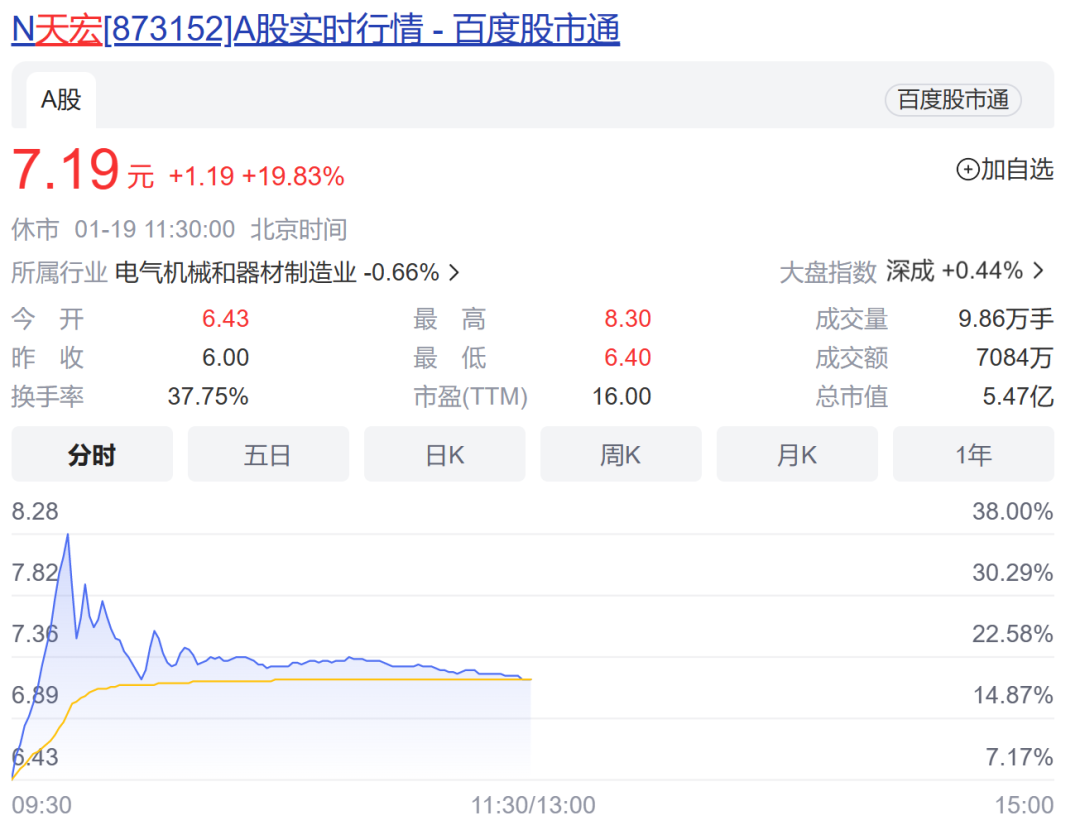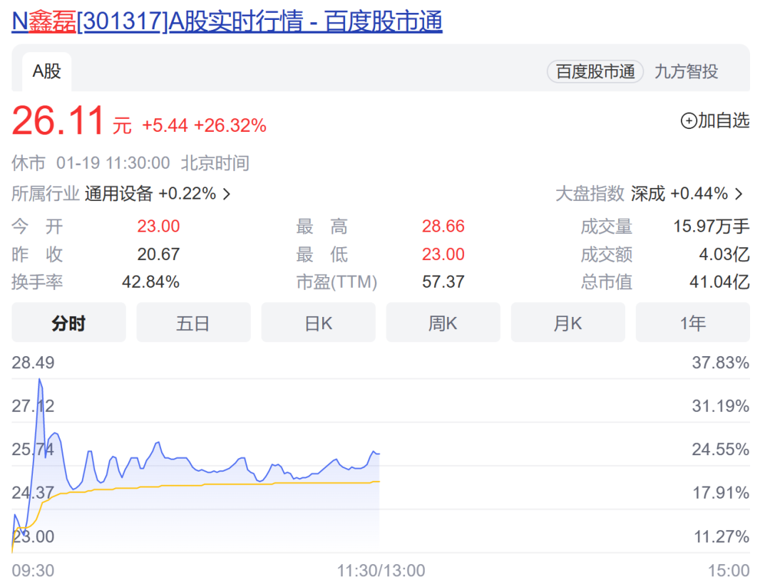 今日还有两只新股上市,分别是创业板上的鑫磊股份和北交所的天宏锂电。截至发稿,涨幅均超过20%。