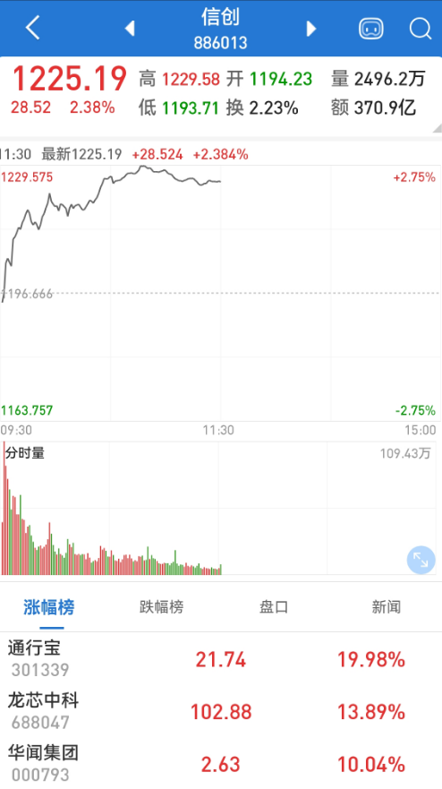 盘面上,信创、国资云、汽车芯片等板块涨幅居前,家具用品、食品饮料、猪肉、保险等板块跌幅居前。北上资金净流入31.22亿元。