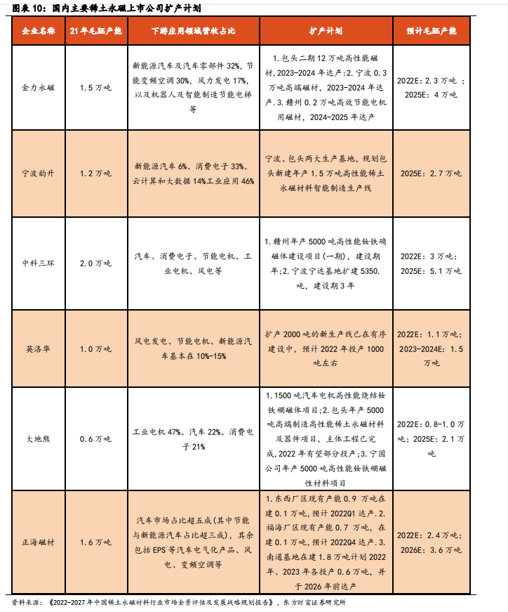 据不完全统计,涉及稀土永磁相关业务的上市公司有:中科磁业、英洛华、金力永磁、中科三环、宁波韵升、正海磁材等,具体情况如下: