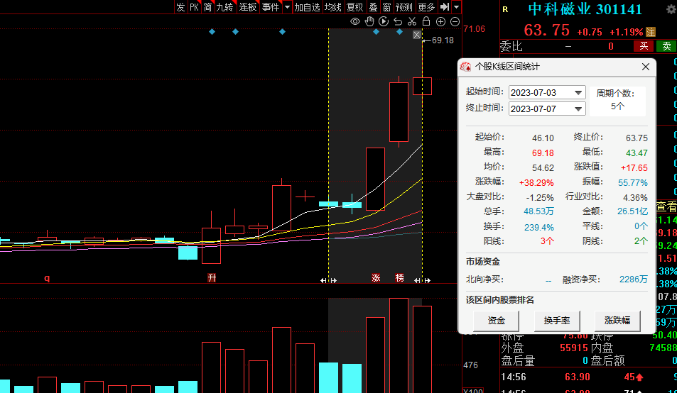 二级市场方面,中科磁业周三收盘20%涨停,本周股价累计最大涨幅59%。