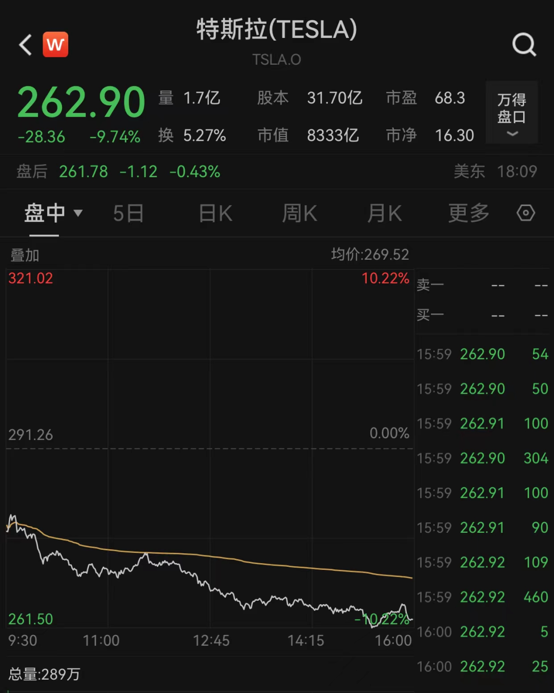 特斯拉大跌近10%