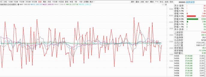 整体来看,今日市场一波三折,上午出现短暂冲高之后,下午各大指数便又开始了再度下行态势。个股层面来看,涨跌比也出现了很明显的前高后低变化,市场表现依旧差强人意。连续多日的折磨,对参与者信心、耐心都是极大地考验。