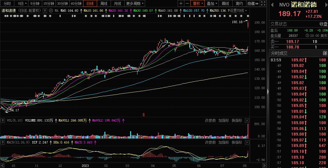 消息面上,美东时间8月8日(周二),坐拥明星减肥药产品的两大制药巨头股价狂飙超10%后均创历史新高。