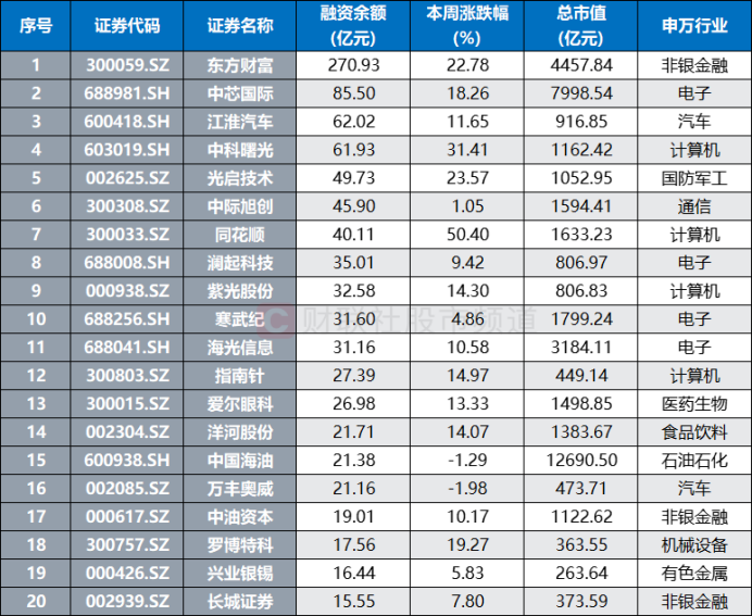 注:目前融资余额创历史新高且规模居前的个股(截至11月7日数据)