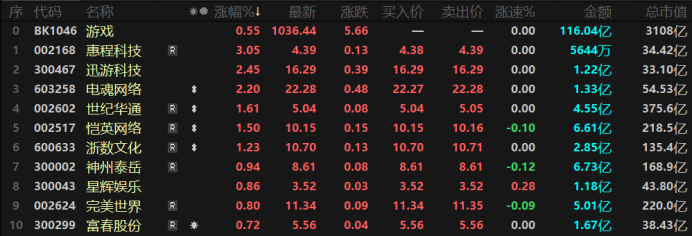 注:游戏股今日普遍回暖(截至12月28日收盘)