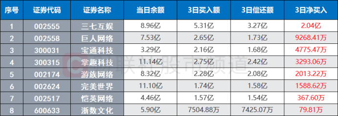 注:近3日获杠杆资金增持居前的游戏股(截至12月27日数据)