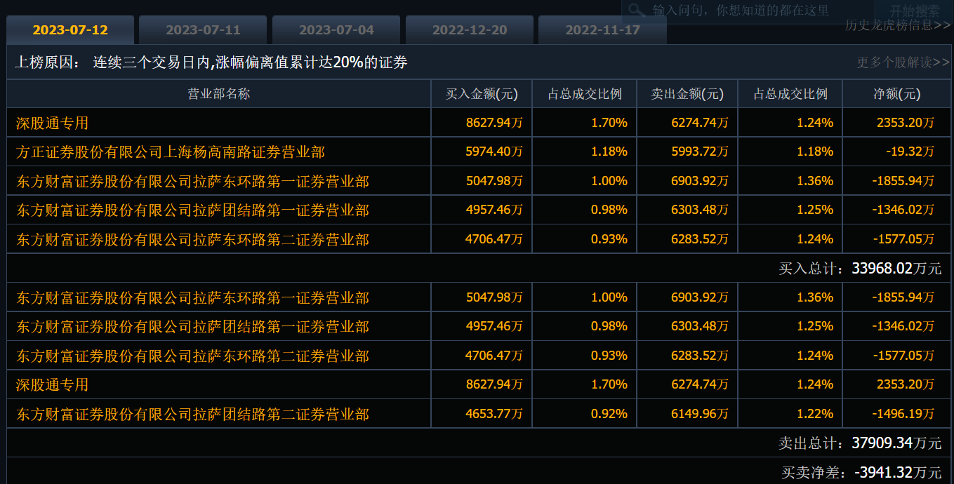 背后又有哪些资金在“疯狂涌入”?众泰汽车盘后公布的一日榜数据显示,龙虎榜资金净卖出3941.32万元,其中,深股通现身榜单,位列买一、卖四席位,素有“散户大本营”之称的东方财富证券拉萨四个营业部位列买三、买四、买五、卖一、卖二、卖三、卖五席位。