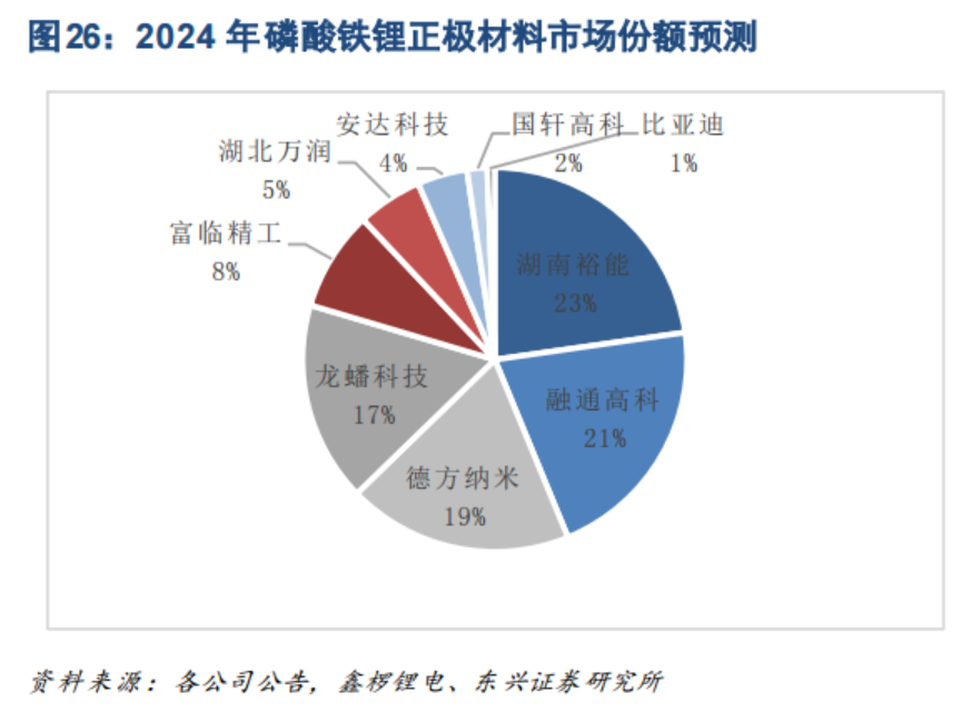 东兴证券洪一在8月27日研报中表示,头部厂商在行业内存在客户、供应链等方面有着较强的优势,后发企业追赶尚需时日,预计,到2023年底或2024年初,湖南裕能、融通高科、德方纳米、龙蟠科技、富临精工湖北万润等9家企业名义产能将达237万吨,届时,在上市公司中排名居前的湖南裕能(上市进程中,2022年6月已过会)、德方纳米、龙蟠科技有望在这一轮产能扩张中受益。