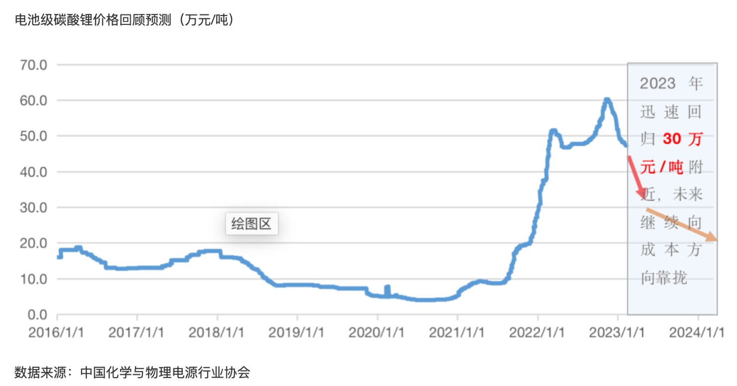 一度“高不可攀”的碳酸锂价格如今已退回到2022年初——3月份以来,电池级碳酸锂价格加速回落,年内累计下跌近50%。