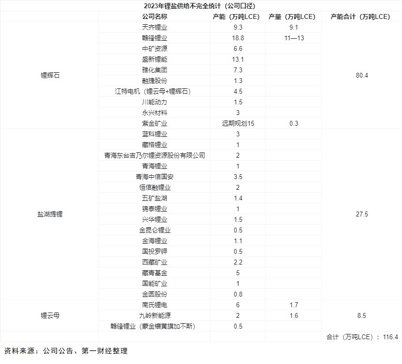 据第一财经不完全统计,2023年国内主要锂盐厂商的规划产能合计约116.4万吨LCE。按照生产1GWh动力电池需要580吨碳酸锂计算,仅国内公司所规划的锂盐产能就够生产约2TWh的动力电池。