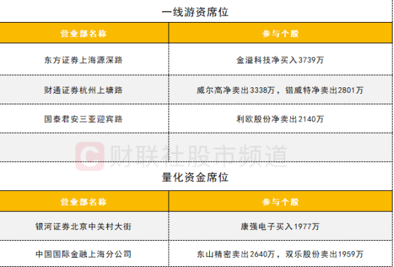 一线游资活跃度一般,车路云概念股金溢科技获一家一线游资席位买入超3000万;PCB概念股威尔高遭一家一线游资席位卖出超3000万。