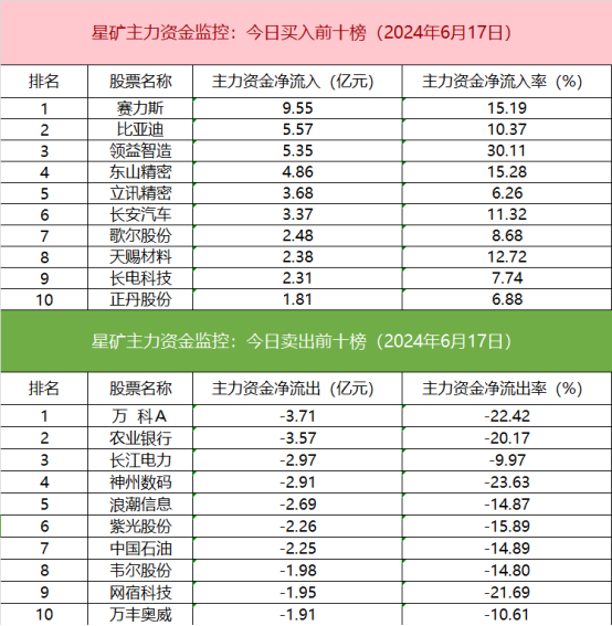 ①近期连续上涨的比亚迪遭北向资金净卖出5.02亿,另一只汽车股赛力斯则获北向资金净买入5.16亿。
