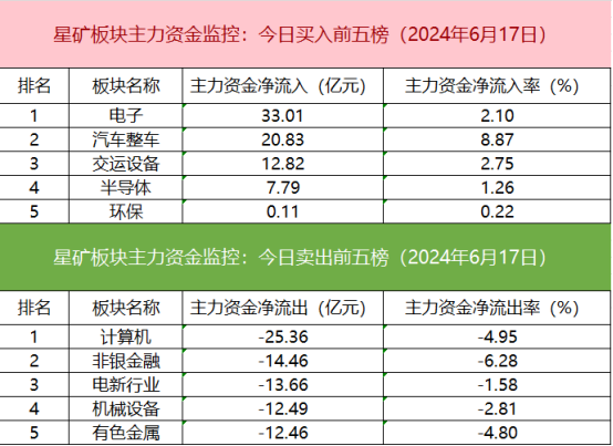 从主力板块资金监控数据来看,电子板块主力资金净流入居首。