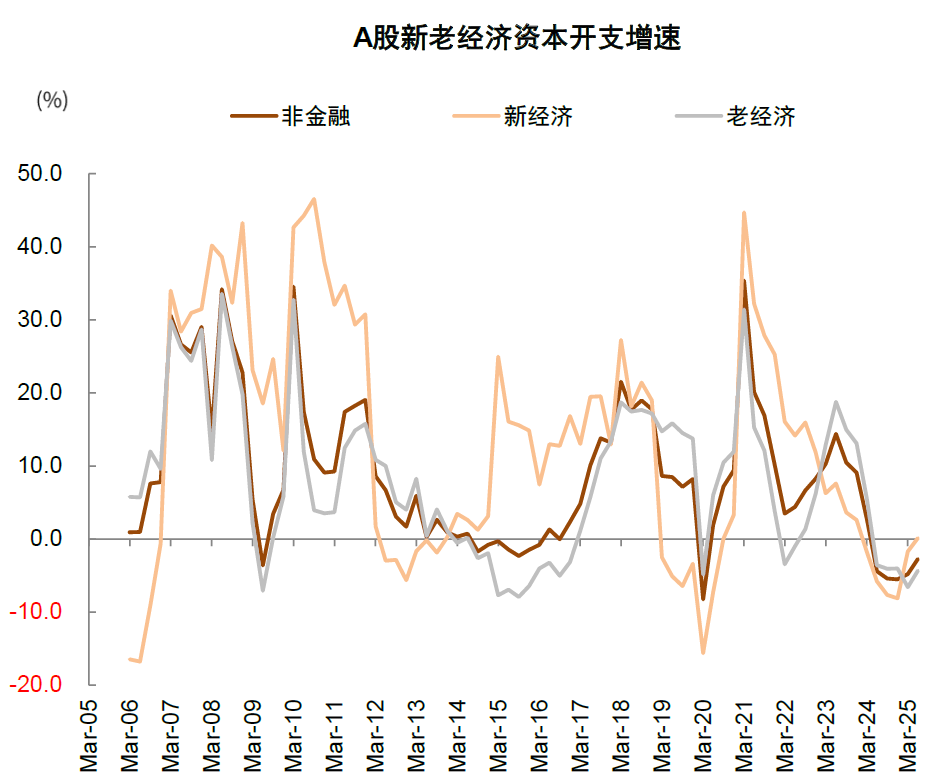 图表7:上半年A股新经济领域的资本开支增速已反弹至正增长
