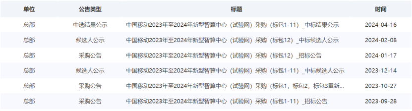 近日,中国移动启动2024年至2025年新型智算中心采购。