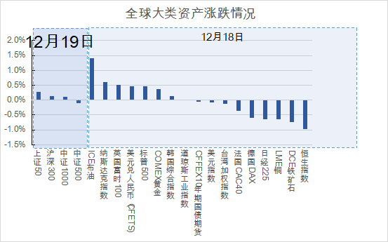 12月19日,市场走势陷入震荡,上证指数开盘小幅下挫,午后跌幅一度扩大至0.5%以上,但尾盘迅速拉升,最终小幅收涨0.05%,上证50、沪深300等大盘股指数表现继续占优。从宏观层面来看,近期并没有值得关注的宏观经济数据或事件。但从技术角度来看,本日市场的触底反弹可能表明指数在当前位置可能存在一定的支撑。短期来看,指数存在反弹的可能性。