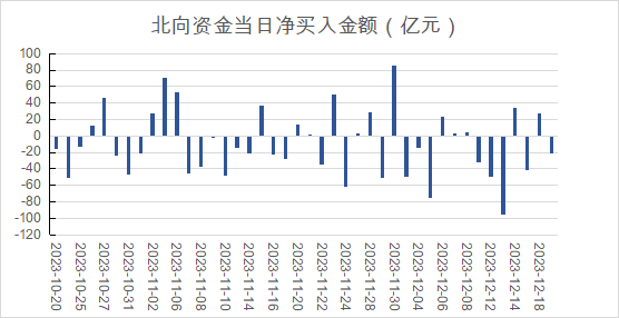 12月19日,北向资金再度出现了小幅的净流出,陆股通整日净流出规模为21.13亿元。其中,沪股通整日净流出18.38亿元,深股通整日净流出2.74亿元。
