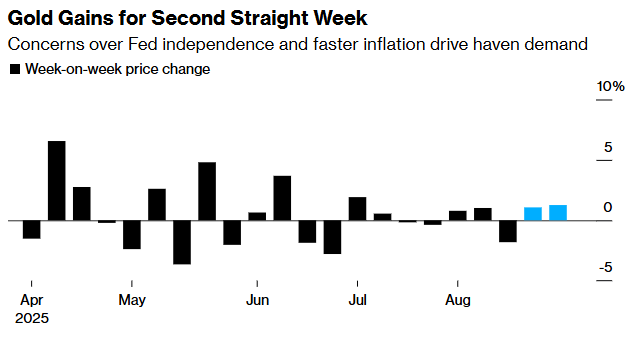 对于美联储独立性受到威胁的担忧日益加剧,这也推动了黄金价格的上涨。此前,特朗普本周已采取行动试图罢免美联储理事莉萨·库克。