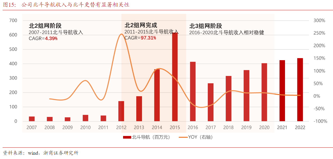 研报菌简评:公司北斗相关业务收入与北斗组网落地存在一定的相关性,目前北斗三号已经组网完成。