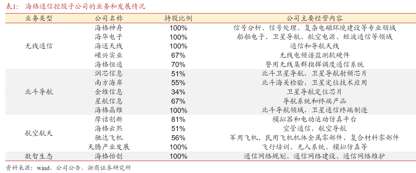 公司是无线通信和北斗导航龙头,行业内用户覆盖最广、频段覆盖最宽、产品系列最全、最具竞争力的重点电子信息企业之一,行业领先的软件和信息服务供应商,主要业务覆盖“无线通信、北斗导航、航空航天、数智生态”四大领域。