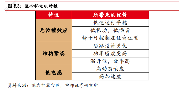 另外,随着机器人产业的迅速发展,人形机器人灵巧手为空心杯电机也打开了增量空间。通常来说,人形机器人的关节需要兼具高自由度和高精度的控制能力,而在人形机器人的手指关节等空间较为狭小的应用场景,空心杯电机小尺寸、高功率密度、高响应速度、高精度控制的诸多优点可以凸显。因此,空心杯电机将成为未来人形机器人的关键组成部件之一。