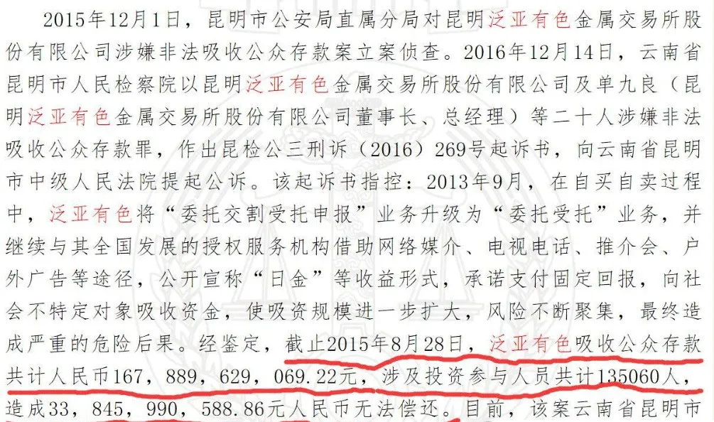 这个时间段,国内确实有两起震惊全国的非法集资诈骗案,分别是易租宝案和泛亚有色案。易租宝牵涉的投资者高达90万人,可以排除。而泛亚有色案正好涉及13万人,涉案金额也在340亿元左右,说明这笔巨额比特币,极有可能就是来自泛亚有色案。