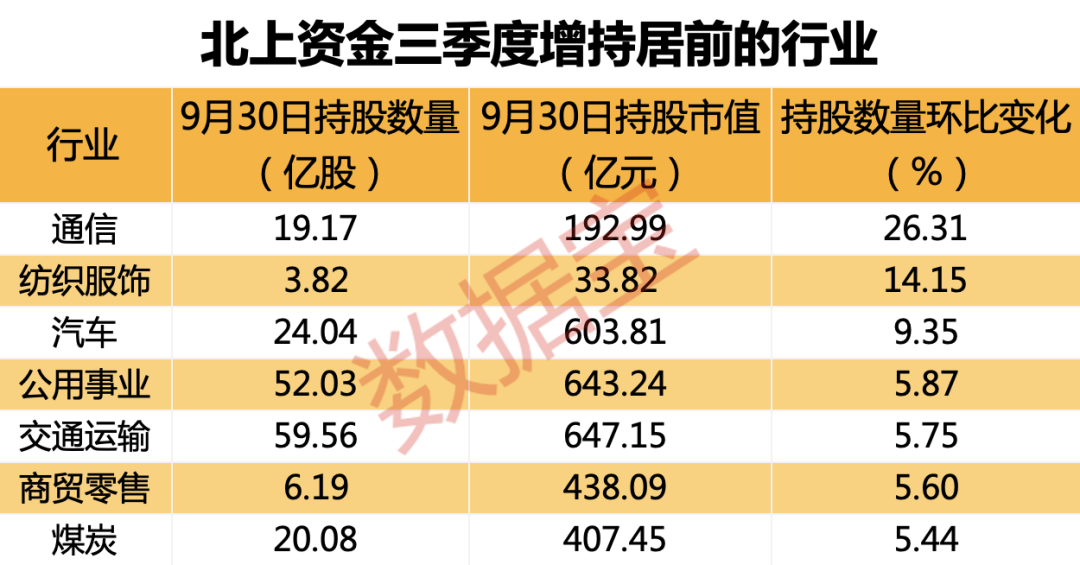 三季度收官,三大运营商均获北上资金大比例增持,光伏龙头最受北上资金青睐。