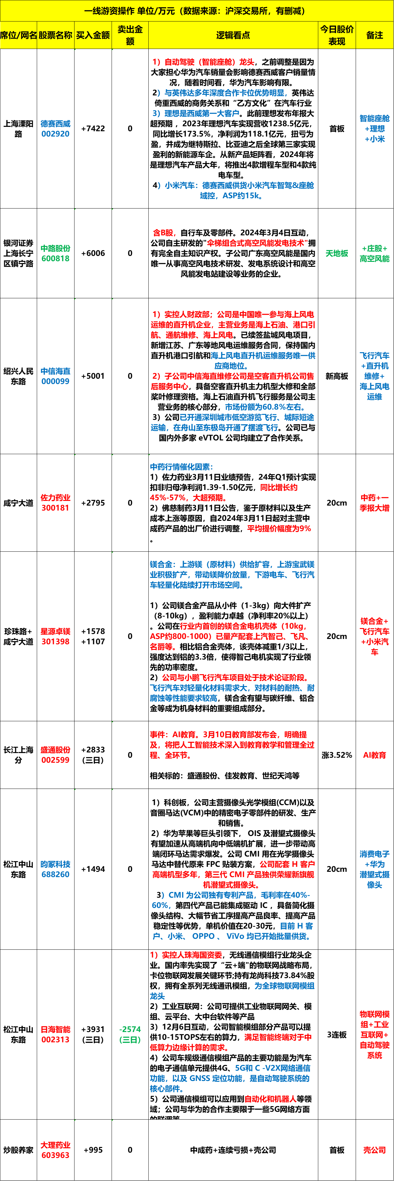2024年3月12日周二,龙虎榜解析。