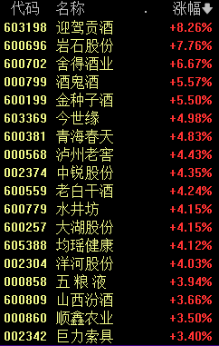 此外,啤酒、乳业、服装家纺、家用电器等板块也表现活跃。