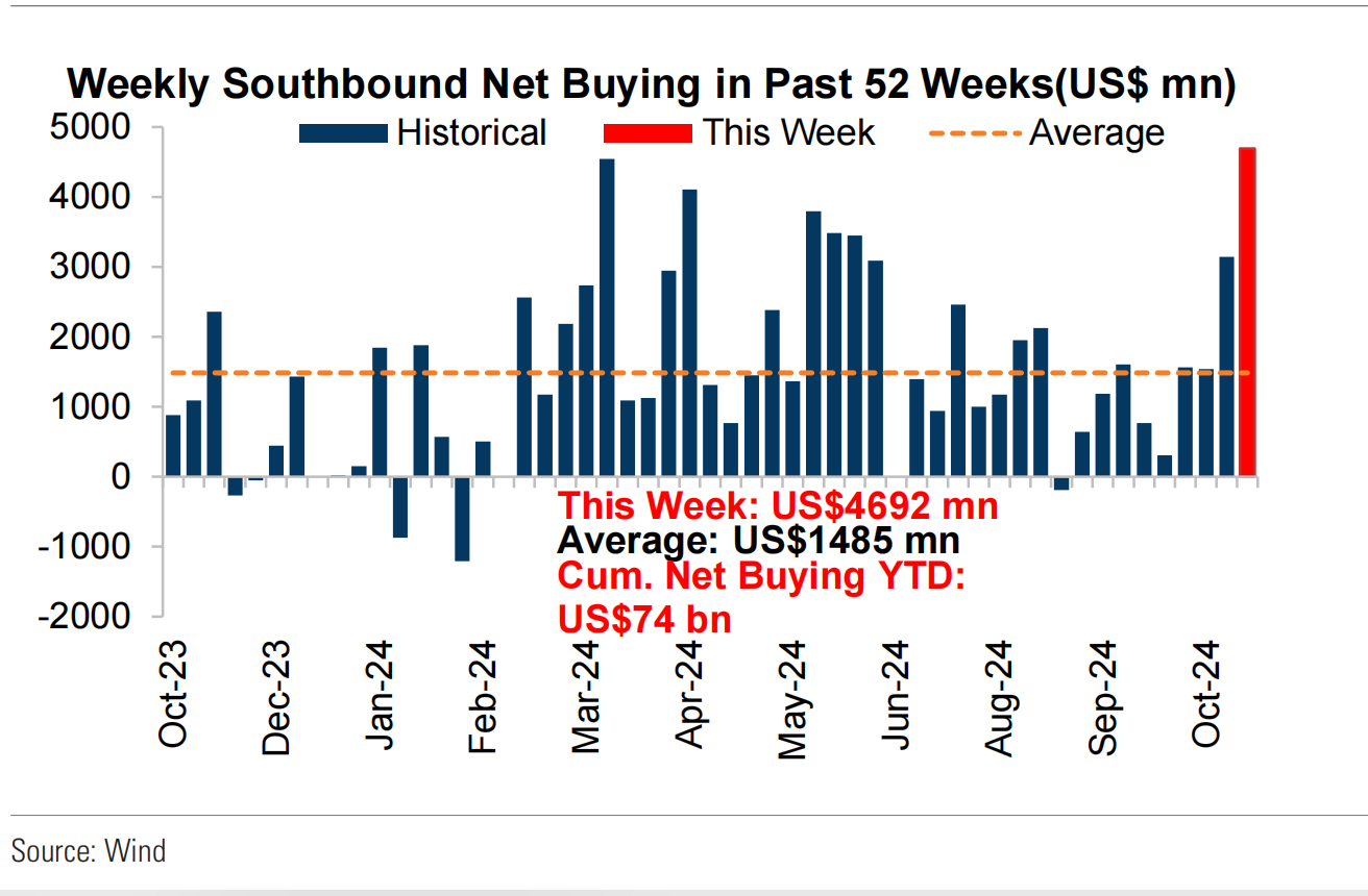 海外主动型基金目前对中国股市的持仓仍相较于基准低配330个基点(BP),位于历史低位,且前期涌入的对冲基金出现获利了结,但海内外机构仍认为中国的政策立场和市场情绪出现根本性转向。当下,市场最关注的事件便是计划于11月4日至8日召开的全国人大常委会会议,以及期间即将公布的美国大选结果。