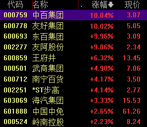 8月28日,免税店板块盘初大涨,截至发稿,中百集团、友好集团、友阿股份、东百集团涨停,王府井、武商集团、友好集团、岭南控股、海汽集团、南宁百货等高开。