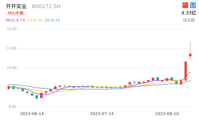开开实业在6月30日出现MACD0轴以下的金叉,且在7月25日出现了双线上穿0轴,目前持续强势上升,在8月9日出现牛点,意味着短中期走强,可积极持股,如果出现快速拉升的情况注意超买的指标数值。目前RSI数值达到88.37,有超买迹象,可关注上方压力位,短期可能强势调整。 5日累计DDX为0.196,大单呈现一定程度的流入。近期大单累计流入天数较多,主力持续关注。总体看,资金和股价的方向一致。个股上涨空间取决于资金的做多力度,目前两者契合度较高,可以保持乐观。 开开实业在行业内比较基本面一般。需要关注基本面改善情况。而近期整体走势得到市场认可。但操作上仍需控制仓位,以短线进出为主。