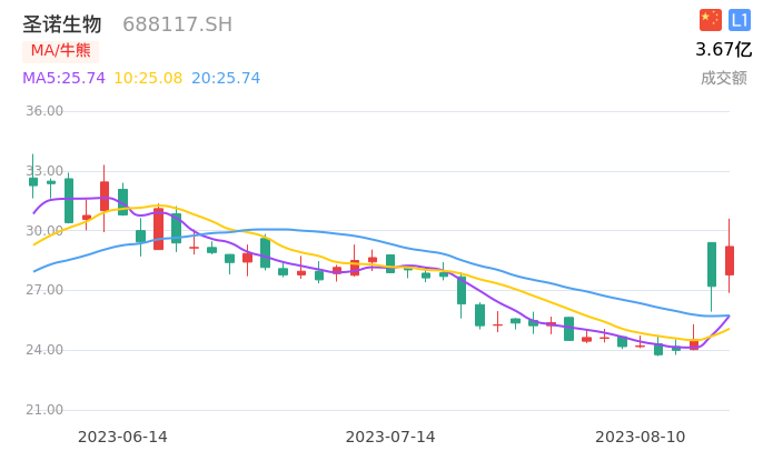 圣诺生物在8月7日出现KD指标低位金叉状态,在8月10日出现牛点,意味着短中期走强,可积极持股,如果出现快速拉升的情况注意超买的指标数值。目前RSI数值达到85.78,有超买迹象,可关注上方压力位,短期可能强势调整。 5日累计DDX为2.613,大单呈现一定程度的流入。与前几日相比,主力持续强力买入,全市场盘面突飞猛进,有资金的支持,股价具有想象空间。需要注意短期已经累计一定的涨幅,需关注技术超买及震荡风险。总体看,资金和股价的方向一致。个股上涨空间取决于资金的做多力度,目前两者契合度较高,可以保持乐观。圣诺生物近10日融资累计买入761.73万元,代表杠杆资金近期看好,或具备机会。 圣诺生物PE(TTM)为50.92倍,相较近3年估值平均值来看,当前估值水平偏高。建议持续跟踪公司经营情况,公司未来若不能获得良好的盈利收入,股价有较大概率会因估值回落而下跌。 圣诺生物在同行内对比基本面数据一般。需要关注基本面改善情况。而近期整体走势得到市场认可。但操作上仍需控制仓位,以短线进出为主。