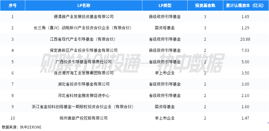 财联社创投通—执中数据显示,3月活跃的机构LP包括德清县产业发展投资基金、长三角嘉兴母基金、江西省现代产业引导基金、保定高新区产业投资引导基金、广西投资引导基金、湖北省投资引导基金等政府资金,以及连云港苏海工业发展集团、赣州高歆产投控股有限公司等非上市企业。