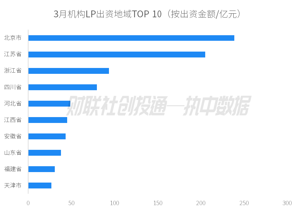 3月共有10家金融机构LP出资,参与10支备案基金,已披露的认缴资本约31.97亿元;出资活跃度和规模较上月有所下降。