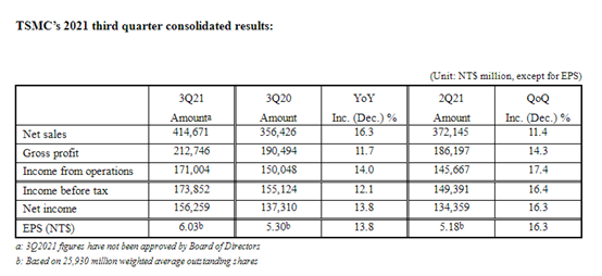 全球最大的晶圆代工企业台积电14日下午公布了三季度业绩。三季报显示,台积电营收4146.71亿新台币(约合951亿人民币),市场预期4135.6亿新台币,去年同期3564.26亿新台币;净利润1563亿新台币(约合358亿人民币),市场预期1494.73亿新台币,去年同期1373.1亿新台币;这意味着,公司每天净赚近4亿元人民币。