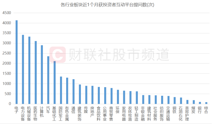 注:各行业板块近1个月获投资者互动平台提问数(截至8月7日数据)