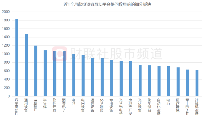 注:近1个月获投资者互动平台提问数居前的细分板块(截至8月7日数据)