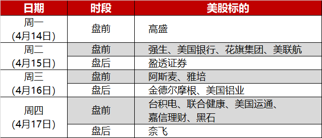 下周,美股Q1财报季拉开序幕,高盛、强生、阿斯麦、台积电、奈飞等将率先放榜,将为投资者带来新的考验。下周五,美国和欧洲多国股市将休市一天。
