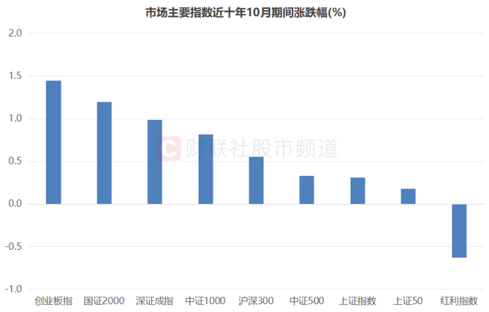 注:市场主要指数近十年(2014年至2023年)10月期间涨跌幅