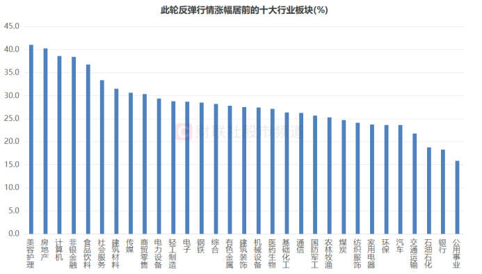 ②此轮沪指反弹期间,美容护理、房地产、计算机、非银金融、食品饮料板块涨幅居前。