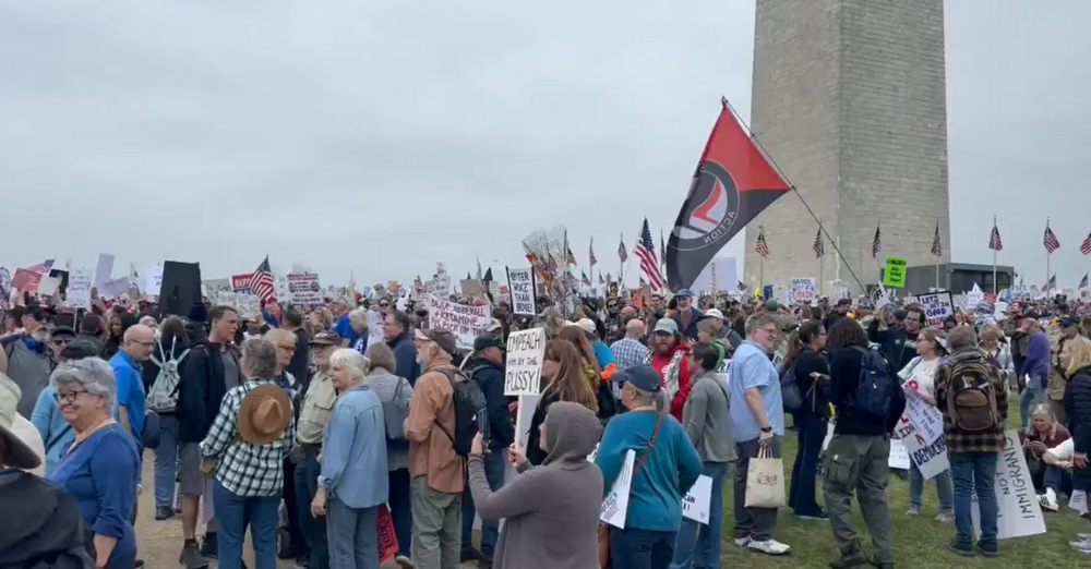 在阴沉的天空和小雨中,人们涌向华盛顿纪念碑周围广阔的草地。组织者表示,预计将有超过2万人参加在国家广场举行的集会。