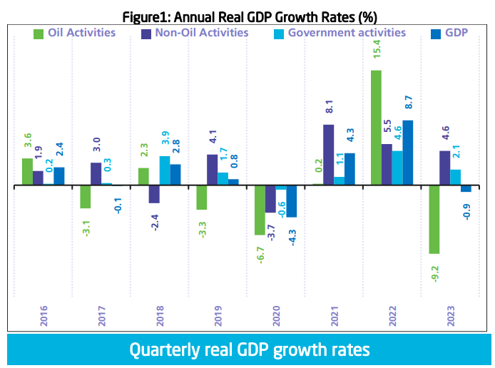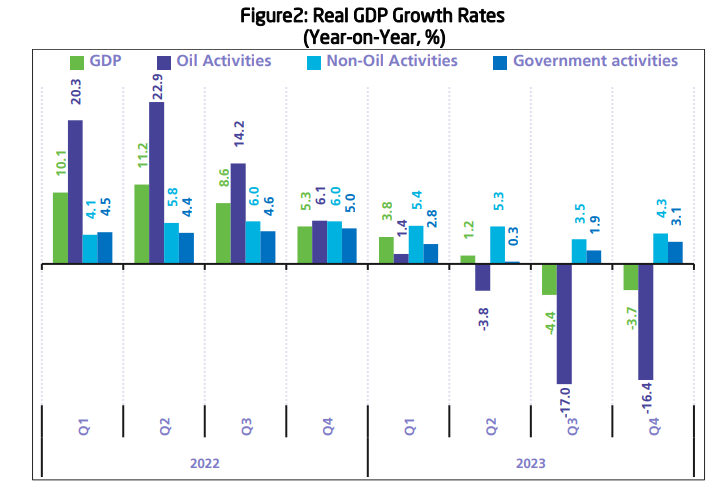 据统计总局估计,去年第四季度沙特石油部门的GDP同比下降16.4%,而非石油部门GDP同比增长4.3%,政府部门创造的产出增长3.1%。