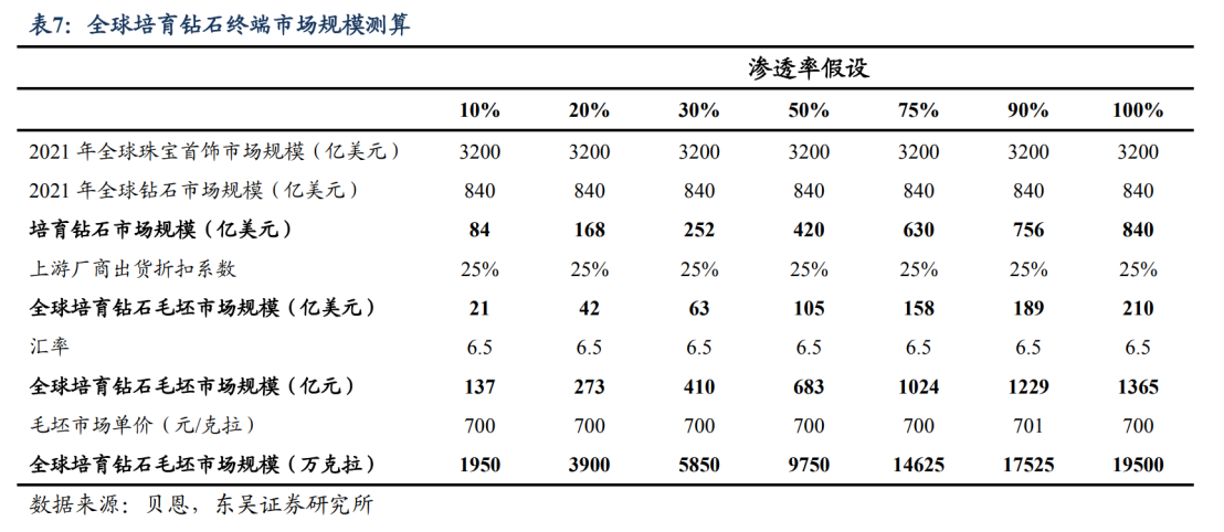 浙商证券分析师王华君7月15日发布的研报中指出,培育钻石目前主要需求在北美,欧亚有望成未来潜力最大新市场,预计2022-2025年全球培育钻石原石需求从143亿元增至313亿元,复合增速35%。