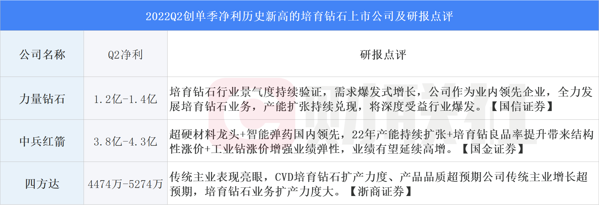 金刚石微粉头部公司惠丰钻石7月18日刚刚登陆北交所,预计上半年净利3800至4200万元,据测算,二季度净利环比预计增长78%-107%。同为培育钻石概念股的富耐克IPO也已经受理,培育钻石“军团”持续扩容。