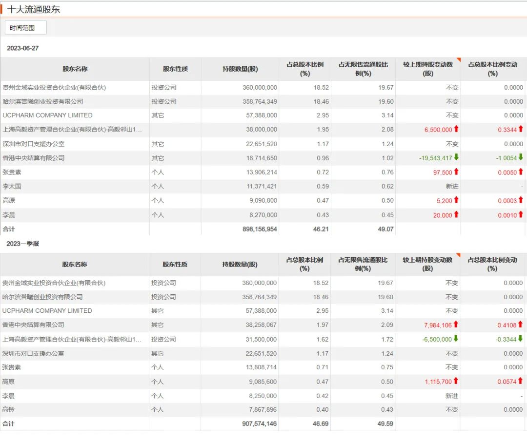 如若进一步拉长期限,冯柳与信邦制药的缘分可以追溯到2021年三季度。彼时前十大流通股东数据显示,截至2021年三季度末,高毅邻山1号远望基金成为信邦制药新进前十大流通股东,持股数量为8880万股。此后,高毅邻山1号远望基金对待信邦制药的态度非常纠结。2022年二季度大幅减持3880万股,不过,同年三季度再度加仓4000万股,四季度又再次大幅减持5200万股。
